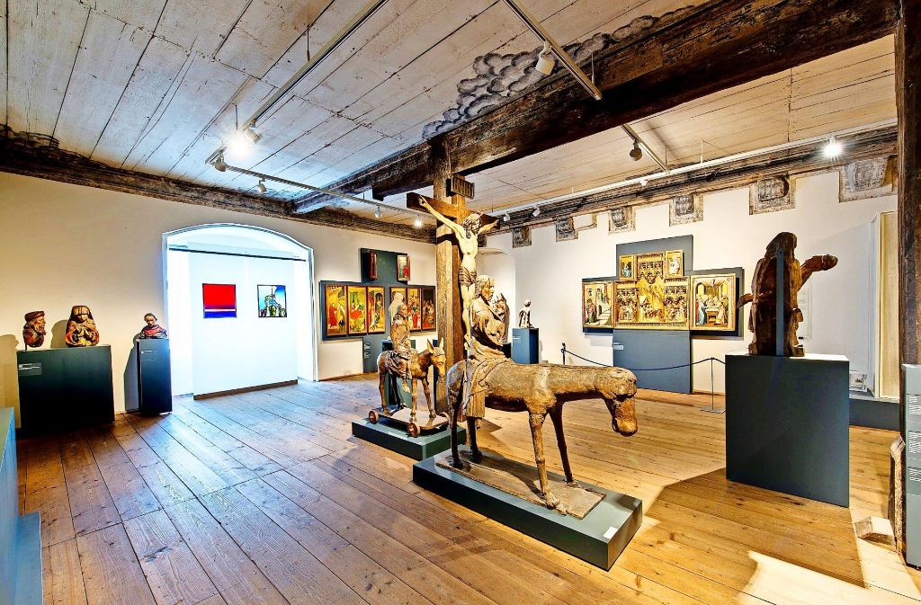 Das Hällisch-Fränkische Museum – im mittelalterlichen Stadtkern Halls gelegen – erstreckt sich über sieben historische Gebäude. Im Zentrum steht der 1238/39 errichtete staufische Keckenturm. Dem Besucher wird Einblick in die Geschichte der Stadt und der Region von den erdgeschichtlichen Anfängen bis zur Gegenwart gewährt. Hervorzuheben sind die Abteilungen zur mittelalterlichen Stadtgeschichte sowie zur spätmittelalterlichen Frömmigkeit. Während des Dreißigjährigen Kriegs wirkte in Hall Leonhard Kern (1588-1662), einer der bedeutendsten deutschen Bildhauer des 17. Jahrhunderts. Das Museum präsentiert eine erlesene Auswahl seiner Kleinplastiken aus Alabaster und Elfenbein. Unterschiedlichste Objekte des Alltags, aber auch hervorragende Kunstwerke bieten Einblick in die reichsstädtische Gesellschaft und Kultur im Zeitalter des Barock. Das Museum besitzt eine umfangreiche Sammlung bemalter Schützenscheiben. Die ausgestellten Exemplare zeigen Szenen aus dem Alltagsleben ebenso wie verschlüsselte Allegorien oder Bilder zu politischen Ereignissen. In einem neu eingerichteten Gebäudekomplex sind Zeugnisse zur Geschichte der Stadt und ihres Umlandes aus dem 19. und 20. Jahrhundert zu sehen. Eine Abteilung ist dem bedeutenden Panoramamaler Louis Braun (1836-1916) gewidmet, dessen Nachlass sich größenteils in Schwäbisch Hall befindet. Über viele Jahrhunderte hinweg verdankte die Stadt Hall ihren Reichtum einer Salzquelle. Anhand von Modellen und zahlreichen historischen Zeugnissen werden die sich wandelnden Methoden der Salzgewinnung aus Sole von der Zeit der Kelten bis ins 19 Jahrhundert erklärt. Daneben wird auch das damit zusammenhängende Recht und Brauchtum vorgestellt. In einer Abteilung über jüdisches Leben kann der Besucher unter anderem eine Laubhütte aus dem 19. Jahrhundert und die 1738/39 von Eliezer Sussmann ausgemalte Synagogenvertäfelung aus Unterlimpurg sehen, ein in Europa einmaliges Zeugnis jüdischer Kultur (s. Foto).